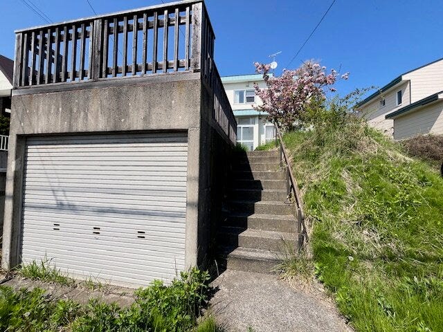 道路から階段を上った場所に位置しているので